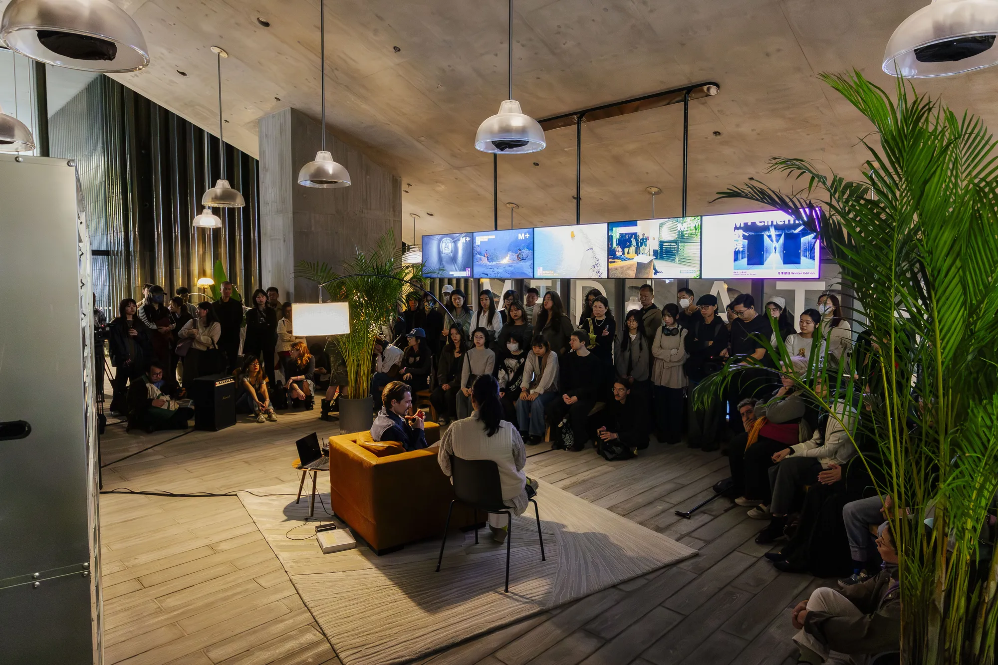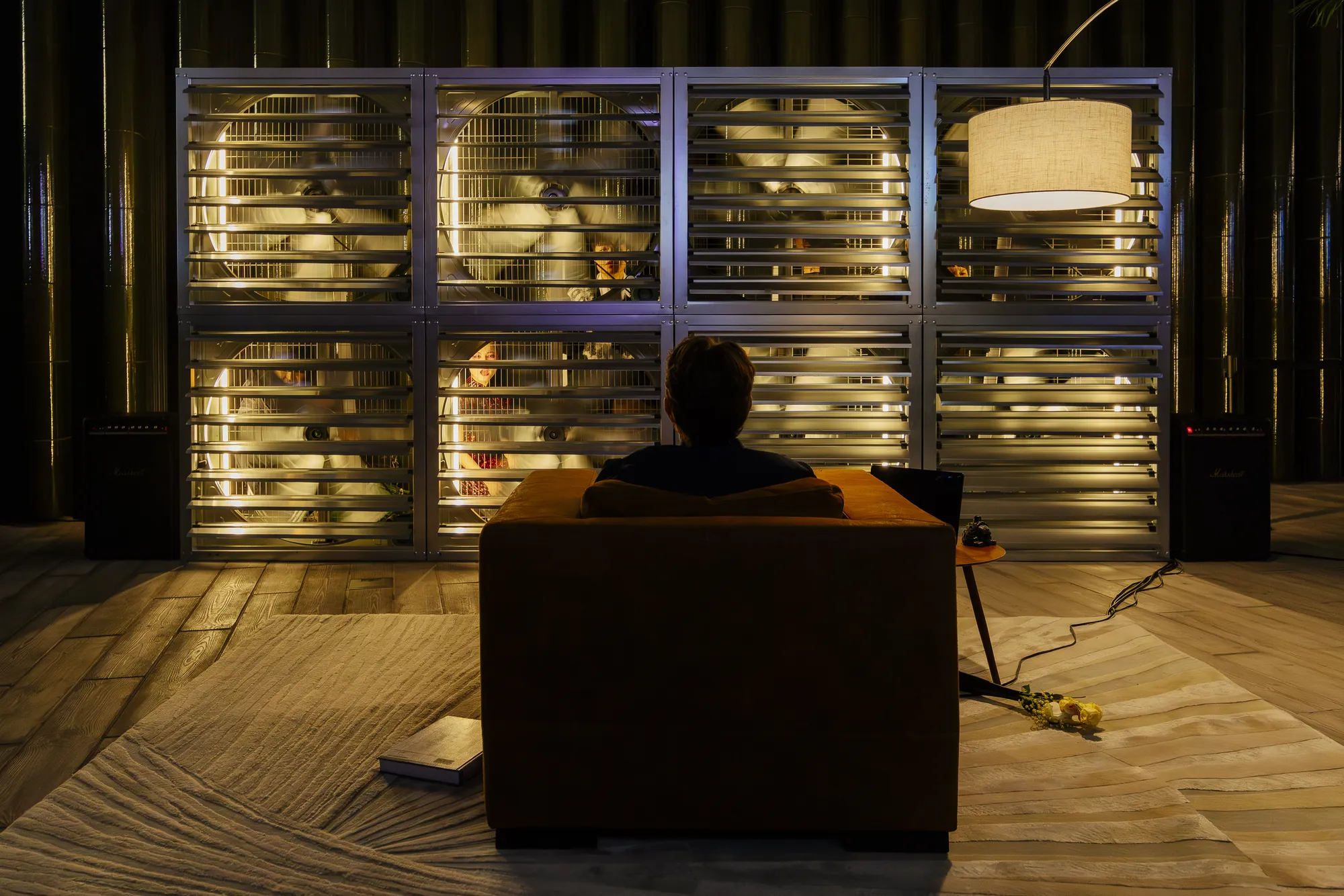 On the morning of 7 February, M+ was engulfed in a cacophony of screams and voices, treating visitors to an unsolicited wake-up call. This was courtesy of artist Samuel Swope who showcased his performance Aeolian Rider (2025). Seated in an armchair in what appeared to be a standard living room, Swope faced a wall of industrial blinds set at mid-ceiling height. Using a remote, Swope controlled which blinds and panels opened and closed, revealing industrial fans on full blast, voices (and glimpses of figures) in varying forms: a continuous anguished shriek; a soprano, baritone, and tenor crescendoing and receding in volume; a rapper accelerating his verses as the performance progressed; and the high-hitting notes of a Cantonese opera singer. Adding to the milieu, Swope joined in screaming, unleashing a suppressed angst. Through a controlled yet unbridled act, Swope momentarily unveiled the raw emotions we tend to stifle.